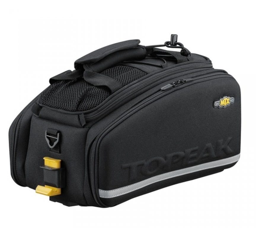 Rozšíriteľná zadná nosná taška s väčšou kapacitou. Priestor je rozdelený na jednu hlavnú časť a dve bočné časti. Taška kombinuje rozmerovo stabilný materiál s pružnou a odolnou tkaninou Denier 600. Taška je vhodná pre všetky nosiče Topeak so systémom MTX QuickTrack™ a bočnicami.