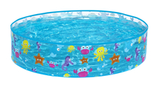 Samostatne stojaci bazén s atraktívnou potlačou morského sveta na trblietavom podstavci s priemerom 122 cm a výškou 25 cm.