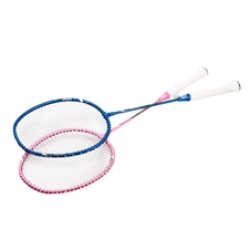 2 bedmintonové rakety: Rakety sú vyhotovené v atraktívnych farbách - jedna s dominantnými ružovými a bielymi prvkami, druhá s modrými a bielymi.
