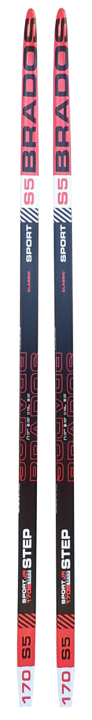 Bežecké lyže s dreveným jadrom, tvarované z niekoľkých vrstiev, vhodné na bežecké trate a nespevnený terén. Vrchná konštrukcia CAP z plastu typu ABS. Skĺznice - jemne brúsený extrudovaný polyetylén s protišmykovou úpravou - "šupiny". Vypuklé hrany umožňujú korčuľovanie na upravených tratiach - upozorňujeme, že šupiny sťažujú korčuľovanie. Lyže pri šmýkaní "drhnú". Dĺžka lyží je 170 cm. K dispozícii sú Brados S5 červené a čierne.