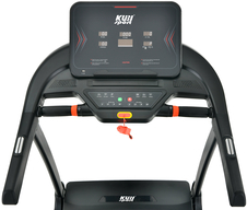 - Vysokokvalitný dvojvrstvový polyuretánový bežecký pás je odpružený na 10 miestach, čo umožňuje pohodlné používanie pásu bez nadmerného zaťaženia dolných končatín a chrbtice. Okrem toho má pás pod bežeckou plochou 2 veľké špeciálne tlmiace vložky, ktoré umožňujú individuálne nastavenie tuhosti bežeckej dosky, a tým tlmenie nárazov nôh na pás počas behu. Je možné nastaviť mäkšiu alebo tuhšiu bežeckú plochu, aby sa šetrili kolenné kĺby a členky.