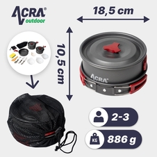 Ľahká súprava riadu Acra C21: varenie na cestách až pre 3 osoby!