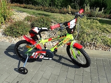 - Bicykel má 16" (palcové = 41 cm) oceľové ráfiky a nafukovacie pneumatiky