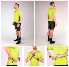 V páse je elastický pás s protišmykovým silikónom, takže dres zostane presne tam, kde má, aj počas dynamickej jazdy. Na zadnej strane nájdete 3 klasické vrecká + 1 nepremokavé vrecko na zips, ideálne na mobilný telefón, kľúče alebo cennosti, ktoré chcete ochrániť pred vlhkosťou.