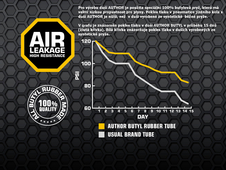AUTHOR 700x35/50C duša vyrobená zo 100 % butylovej gumy s veľmi nízkou priepustnosťou plynov. Udrží tlak vzduchu v cyklistickej pneumatike dlhšie ako duše zo syntetickej gumy.