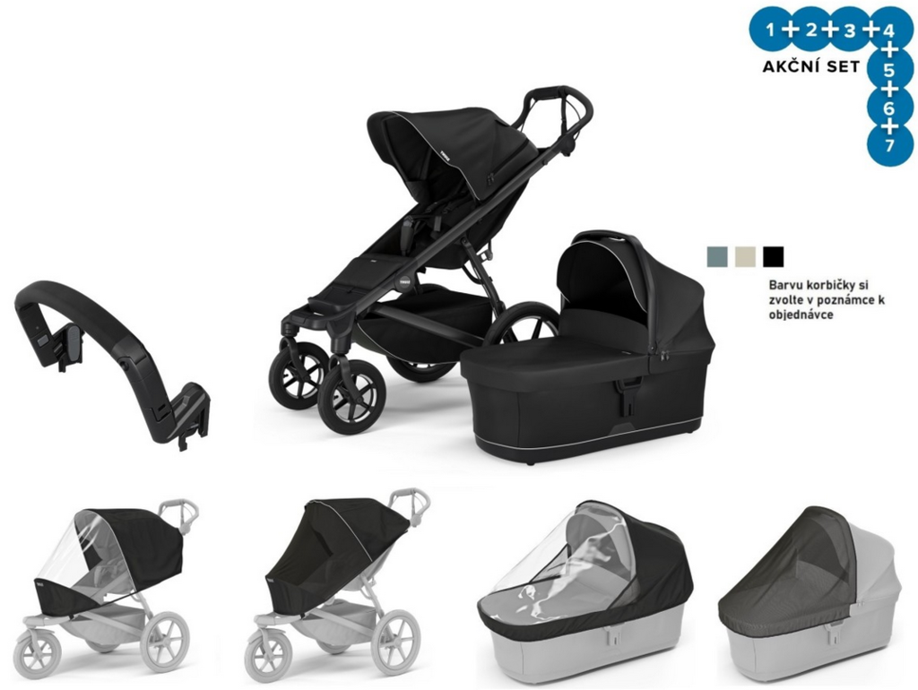 Kočík Thule Urban Glide 4 Black + korba + pláštenka + moskytiéra + madlo + pláštenka korba + moskyt. korba