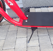 Predné a zadné "V" brzdy zaručujú spoľahlivé brzdenie a bezpečnosť jazdy, zatiaľ čo predĺžený rám z Hi-tech zosilnenej ocele sa postará o potrebnú stabilitu kolobežky pri vyšších rýchlostiach. Protišmykové nášľapy s dĺžkou 40 cm potom zaisťujú pevný postoj v každej situácii vrátane jazdy v daždi alebo s mokrými podrážkami.