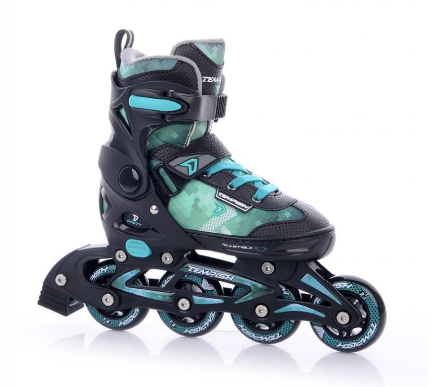 Chlapčenské strečové korčule DASTY určené na rekreačné a kondičné korčuľovanie. Korčule majú jednoduchý a pohodlný systém zväčšovania veľkosti pomocou tlačidla na boku skeletu. Korčule sa dajú nastaviť na 4 veľkosti. Ide o veľmi kvalitné detské korčule, a to ako dizajnom, tak aj konštrukciou skeletu a podvozku. Korčule sa dodávajú s inbusovým kľúčom zdarma.