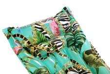 Nafukovacie lehátko s atraktívnou potlačou exotických motívov poskytuje pohodlný odpočinok vďaka piatim nafukovacím komorám a samostatnému nafukovaciemu vankúšu. Rozmery ležadla sú 183 x 69 cm. Steny komôr sú zosilnené, aby sa zvýšila ich odolnosť, ale napriek tomu by sa s ležadlom malo zaobchádzať opatrne, pretože môže byť náchylné na poškodenie. Pred použitím ležadla sa uistite, že na podložke nie sú ostré predmety, ako sú kamienky alebo vetvičky, aby ste predišli poškodeniu. Lehátko je vybavené samolepiacimi záplatami na prípadné opravy.