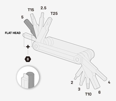 | NÁSTROJE | 2/2,5/3/4/5/6/8 mm šesťhranné kľúče Kľúč Torx® T10 / T15 / T25 Plochý skrutkovač |