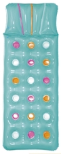 Nafukovacie lehátko s 18 vreckami má samostatný nafukovací vankúš a časť na ležanie, čo zaručuje väčšie pohodlie. Jeho rozmery po nafúknutí sú 188 x 71 cm, čo z neho robí veľmi obľúbený model. Lehátko je k dispozícii v atraktívnej tyrkysovej farbe. Upozornenie: Pred použitím ležadla sa uistite, že je jeho podklad hladký a neobsahuje ostré predmety, ako sú kamienky alebo vetvičky, ktoré by mohli ležadlo poškodiť.