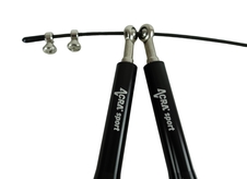 Švihadlo Acra Jump black je vynikajúci cvičebný nástroj na zlepšenie celkovej kondície. Rukoväte, ktoré sú vyrobené z pevného hliníka, majú protišmykový povrch, čo zaručuje bezpečné a pohodlné uchopenie. Kovové otočné ložiská s uťahovacou skrutkou umožňujú jednoduché nastavenie dĺžky lana podľa potreby. Samotné švihadlo má oceľové jadro chránené gumovým lankom a je zakončené gumovými odnímateľnými objímkami, ktoré umožňujú presné skrátenie švihadla.