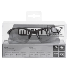 Okuliare MIGHTY poskytujú 100 % ochranu UV400, majú certifikát CE, dodávajú sa s vrecúškom z mikrovlákna a sú zabalené v priehľadnej škatuľke. Ochranné okuliare sú vyrobené z takmer nezničiteľného polykarbonátu s úpravou proti poškriabaniu. - Športové okuliare s fotochromatickými sklami - špeciálny povrch skiel, vďaka ktorému vplyvom UV žiarenia samovoľne stmavnú, nereagujú na umelé svetlo - v tmavom prostredí (tunel, les) sa opäť rozjasnia - s prídavnými (NIE fotochromatickými) sklami: číre, žlté, oranžové - ochrana UV400 - lepšia viditeľnosť vďaka absencii spodných rámov - mäkký nastaviteľný nosník - ochrana povrchu proti poškriabaniu - s taškou na prenášanie