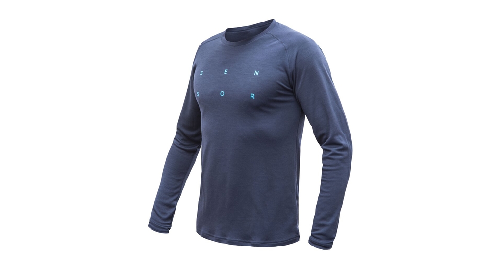 Pánske tričko dl.rukáv SENSOR MERINO BLEND TYPO deep blue