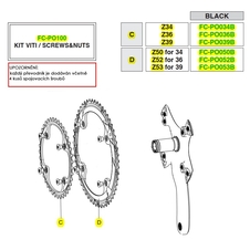 Prevodovka Potenza 11s. na montáž na 4. rameno kľuky. Od vyššej série Super Record 11s sa líši čiernou farbou. Prevodník obsahuje 4 skrutky na upevnenie na kľuky.
