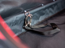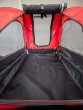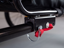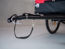 - jednoduché upevnenie na zadnú nápravu bicykla, zaistenie upínacím popruhom s karabínou proti odpojeniu vozíka počas jazdy