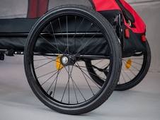 Vozík je vybavený dvoma stabilnými 20" kolesami. Vďaka stabilnej a ľahkej konštrukcii je vozík atraktívnym prostriedkom na prepravu vášho domáceho zvieraťa na výlety. Odporúčaný hmotnostný limit je 40 kg. Vonkajšie rozmery vozíka sú: dĺžka - 79,5 cm (+ cca 70 cm oje) x šírka - 60,5 cm x výška - 68 cm. Hmotnosť je 15 kg. Vnútorný priestor má rozmery 74,7 x 52,7 x 60 cm. Vozík je vyrobený v červenej a čiernej farbe .