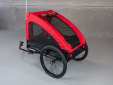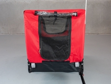 dvojkolesový vozík s ojom, ktorý umožňuje jednoduché upevnenie za zadné koleso. Ako poistka proti uvoľneniu vozíka počas jazdy slúži upínací popruh s karabínou, ktorý upína vozík k rámu bicykla. Vozík je vyrobený z pevného materiálu (PES 600D oxford) a má sieťku proti hmyzu na troch stranách - vpredu + na 2 stranách a v streche vozíka . Strecha a predná stena majú tiež PVC rolovateľnú fóliu na zakrytie sieťoviny v prípade dažďa alebo mokrej jazdy. Prístup do vozíka je spredu a zozadu pomocou otvoru na zips, ktorý zabezpečuje pohodlné nakladanie zvieraťa. Vozík je tiež vybavený reflexnými pruhmi na bokoch, odrazovými sklami na prednej a zadnej strane.