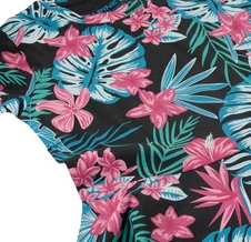 Dievčenské šaty DRIMO s rukávmi nesmú chýbať v dámskom šatníku. Polopriliehavý strih s dĺžkou po kolená je medzi dievčatami obľúbený a žiadaný a veľmi praktický na letnú sezónu, do mesta aj do prírody. Materiál s celoplošnou potlačou je vyrobený z prírodnej bavlny, ktorá je veľmi mäkká a poddajná. Zloženie materiálu: 95 % bavlna, 5 % elastan.