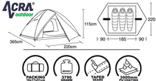 Stan pre 3 osoby - dvojitá kupola s predným a zadným vchodom (závesná spálňa a samostatný vrchný plášť)