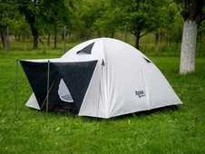 Rodinný stan pre 3 - 4 osoby - dvojitá kupola (závesná spálňa a oddelený vrchný plášť) so strieškou nad vchodom s vynikajúcimi vlastnosťami proti dažďu - vysoká odolnosť vrchného plášťa, podlážky a podlepené švy vytvárajú zaujímavé podmienky na používanie stanu pre rodiny s deťmi s možnosťou dlhodobého používania v kempoch.