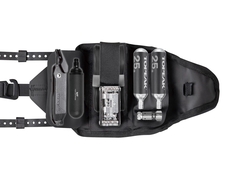 Kompaktná taška s tromi rozdelenými časťami s vnútornými organizérmi, ktoré udržujú zariadenie na svojom mieste a skvele eliminujú hluk. Úhľadne do nej uložíte náradie a potreby na opravu preliačiny, aby ste boli vždy pripravení na svoje dobrodružstvá. Bezpečná a jednoduchá montáž pomocou popruhov, bez potreby náradia, kdekoľvek na bicykli.