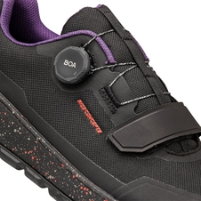 Zapína sa pomocou suchého zipsu a koliesok BOA s doživotnou zárukou. BOA umiestnený na vrchu a suchý zips na spodnej strane zabezpečuje správne rozmiestnené dotiahnutie chodidla a zároveň umožňuje najjednoduchšie nasadanie/vyzliekanie. Jazyk je pružne pripevnený ku konštrukcii topánky, aby držal na mieste a zabraňoval vnikaniu nečistôt.