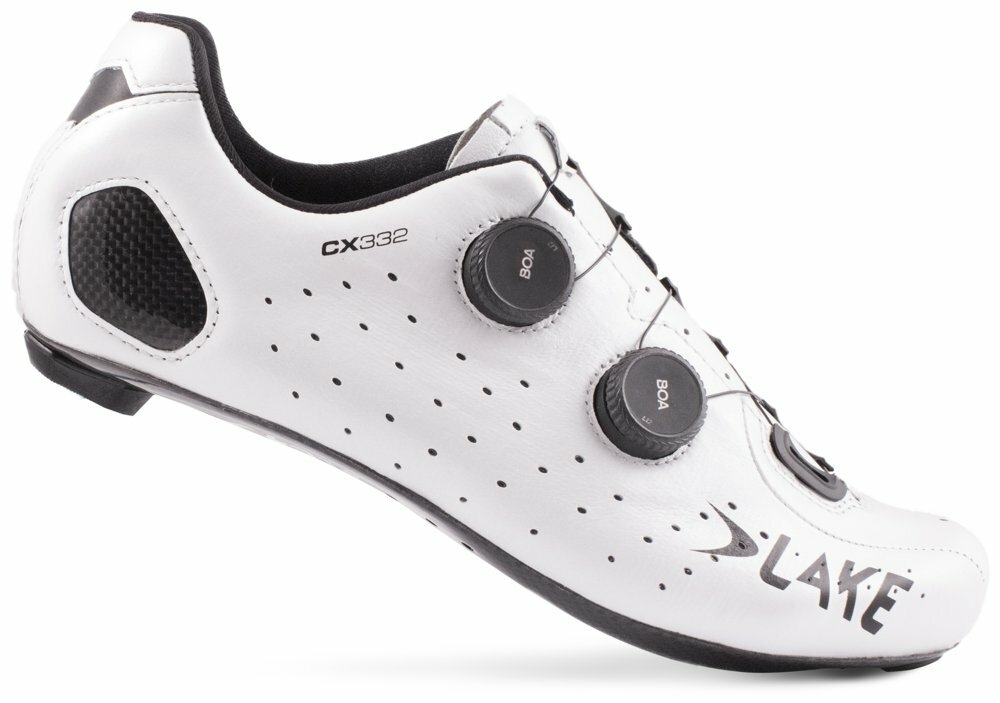 Cestné pretekárske tenisky LAKE CX332 s dvoma upínacími systémami BOA Li2 a 100 % karbónovou podrážkou Lake Race poskytujúcou vysokú tuhosť s požadovaným prenosom energie na pedál s možnosťou individuálneho tvarovania pätovej karbónovej časti. Zvršok modelu je vyrobený z prémiovej klokanie kože K-Lite s dlhotrvajúcou odolnosťou pri zachovaní vysokej priedušnosti a odolnosti voči vode.Zvršok