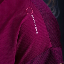 Dámske športové tričko ENERGIA so zníženou dĺžkou je vyrobené z mäkkého, veľmi príjemného na dotyk, ľahkého materiálu obohateného o technickú zložku Graphene. Ide o inováciu, ktorá prináša revolúciu v textilných materiáloch. Materiál obsahuje atómy uhlíka usporiadané do šesťuholníkového vzoru, ktoré mu dodávajú mimoriadnu pevnosť, zabezpečujú optimálny prenos tepla, ideálnu termoreguláciu, odolnosť proti UV žiareniu, zabraňujú rastu baktérií a telesnému zápachu, a dokonca odpudzujú roztoče. Vďaka svojmu zloženiu zabezpečuje aj rýchle schnutie. Pohodlný, moderný, voľný strih perfektne sedí a vyhovuje každej postave. Tričko má univerzálne využitie pri širokej škále všetkých športových aktivít, najmä pri behu alebo fitness.