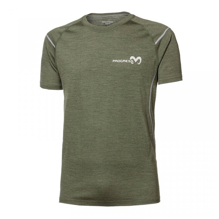 Tričko krátke pánske Progress NKR merino khaki melír