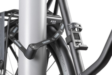Zámok sa dodáva s praktickým držiakom. Držiak možno pripevniť na košík na fľašu, alebo ak bicykel nie je k dispozícii, držiak možno pripevniť pomocou 2 dodaných popruhov. Použitý mechanizmus zabraňuje hrkaniu počas jazdy.