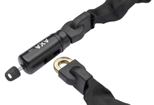 Mimoriadne odolný reťazový zámok. Kvalitné spracovanie všetkých častí zámku a vynikajúce zabezpečenie bicykla. Symetrické kľúče umožňujú pohodlnú manipuláciu so zámkom zo všetkých polôh. Dĺžka reťaze je úctyhodných 100 cm a jej priemer je pôsobivých 9,5 mm. Reťaz je uložená v odolnom polyesterovom ob