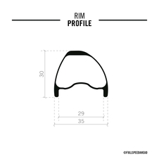 - Asymetrický, 30 mm hlboký x 35 mm široký karbónový ráfik s 29 mm ID